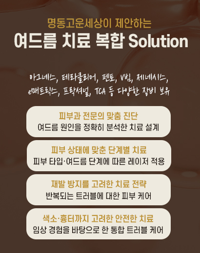 여드름치료 여드름흉터치료 기미/색소 백반증 편평사마귀 손발톱무좀 3D 동안 리프팅 아피니트 액취증/다한증 젤틱 체형관리 메디컬 스킨케어 中國語 여드름 Real Story 핌클케어 Real Story